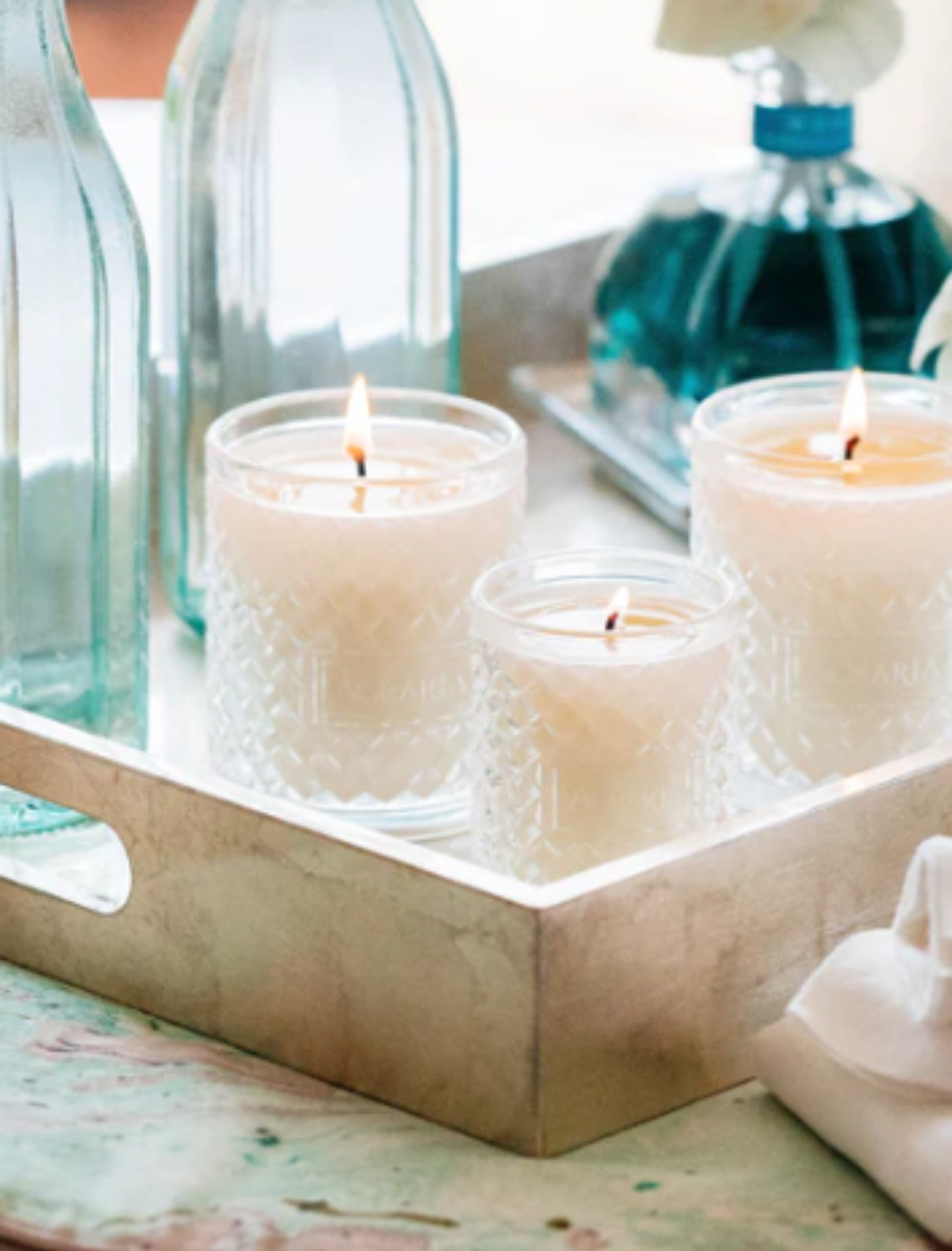 Agraria's textured photophore candle glass is a modern take on the distinctive, woven palm leaf cases known by Agraria loyalists. The intricate pattern accentuates the dancing flame to create a lively and luminous glow.