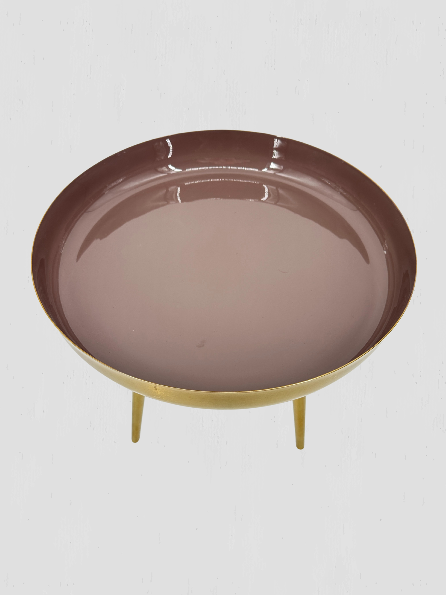 Rose enamel with gold exterior and legs.
