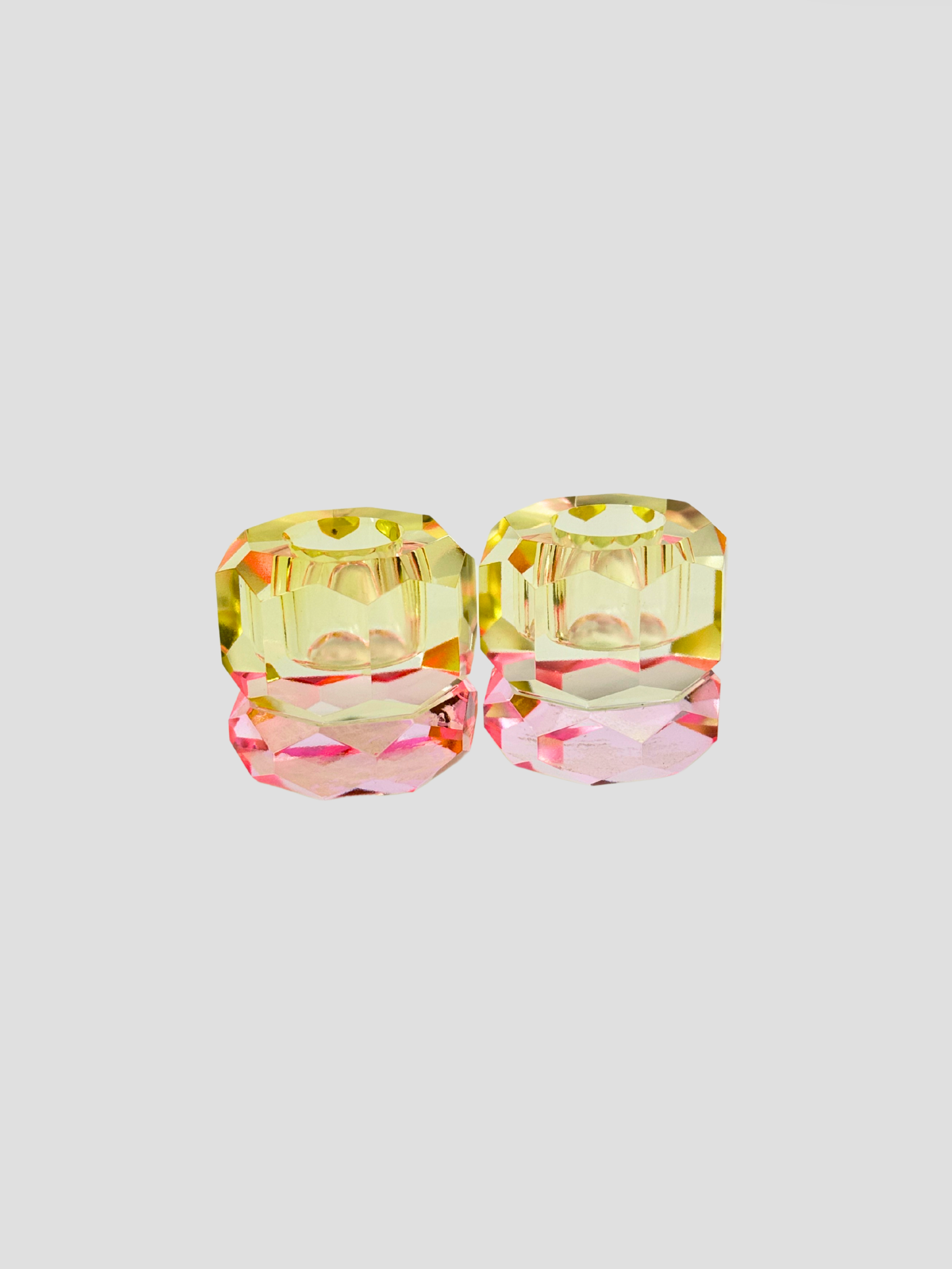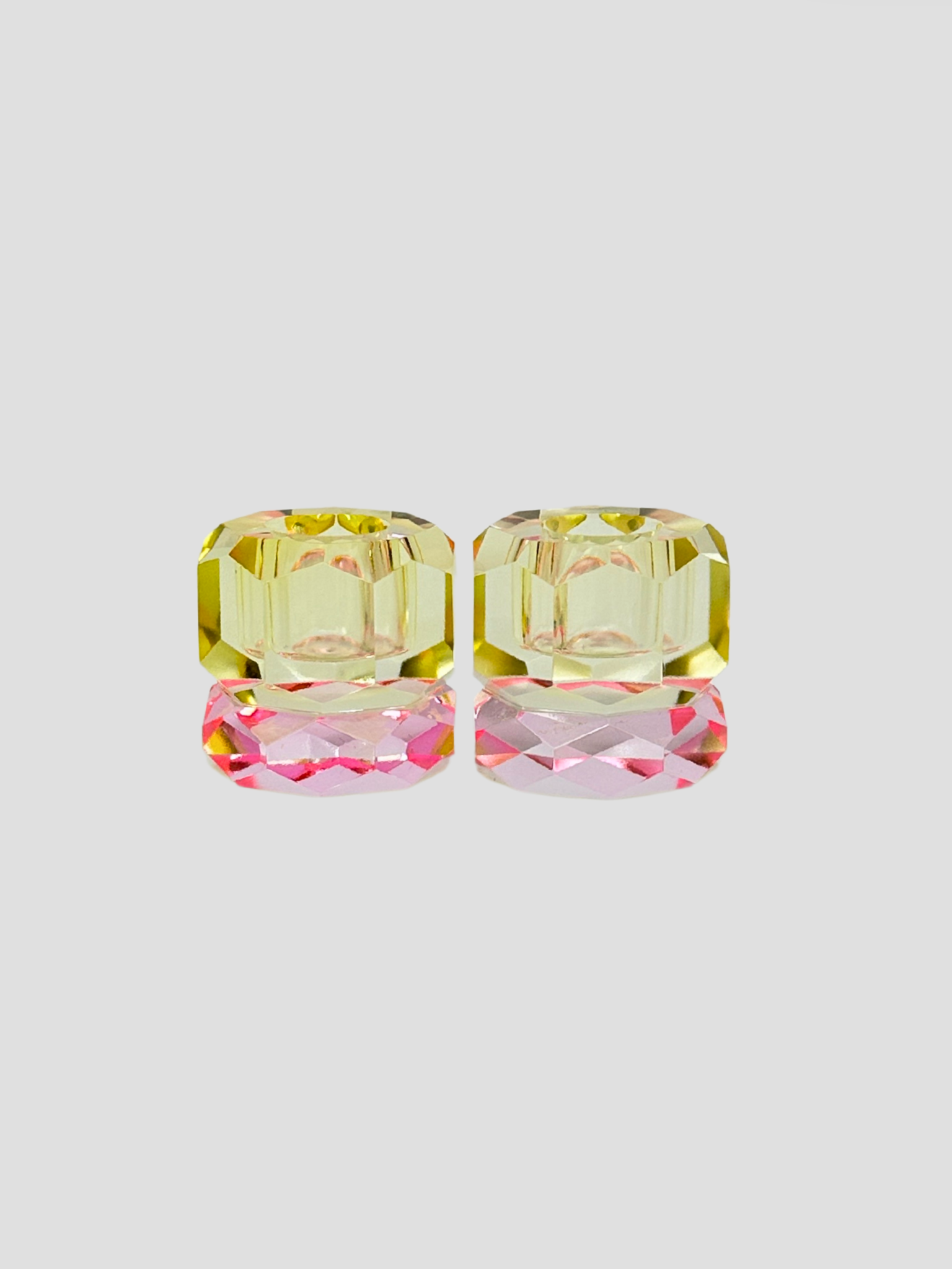 Faceted Crystal Candle Holder Pair - Butter & Light Pink