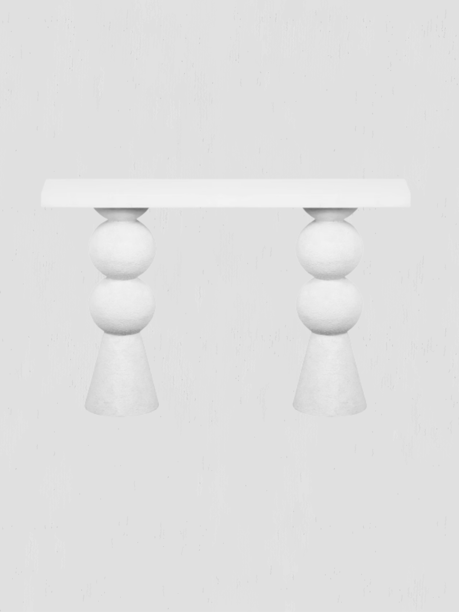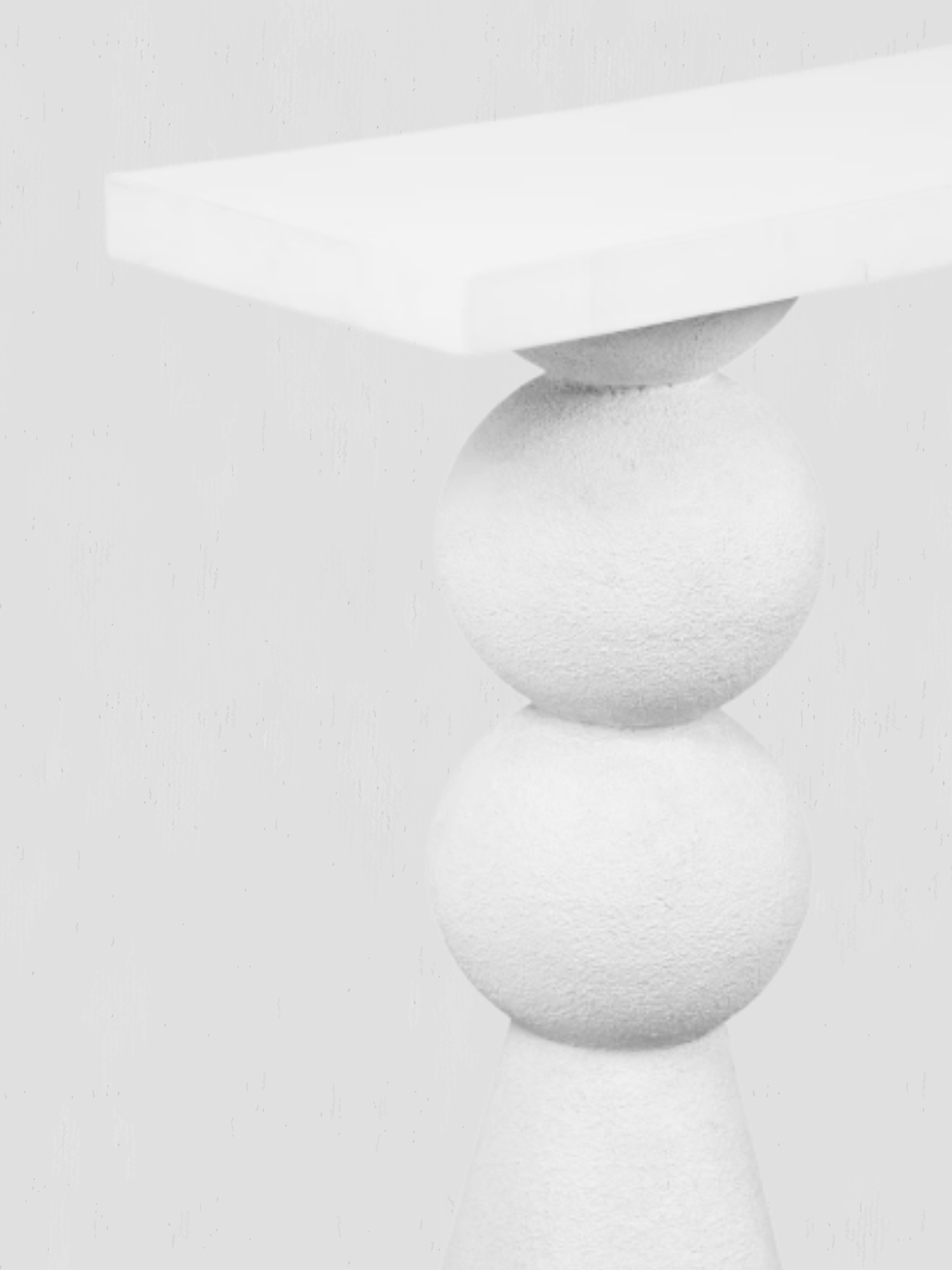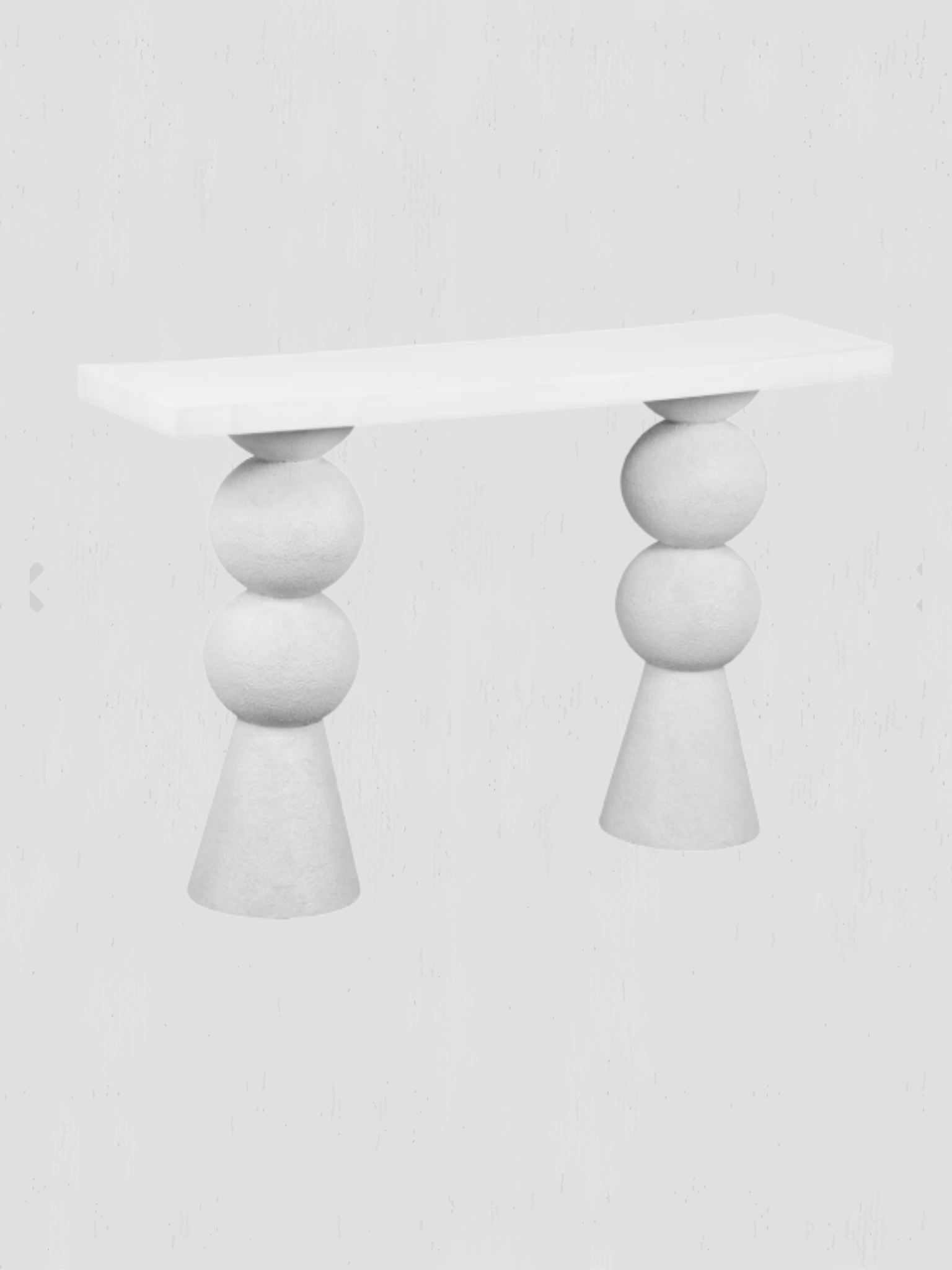 Elevate your space with the sculptural totem bases and resin top. The eclectic form of the legs is highlighted by the biomorphic surface texture, set against the sturdy and substantial hand-poured opaque resin tabletop. This combination creates a stylish monochromatic aesthetic while introducing captivating textures to the room.