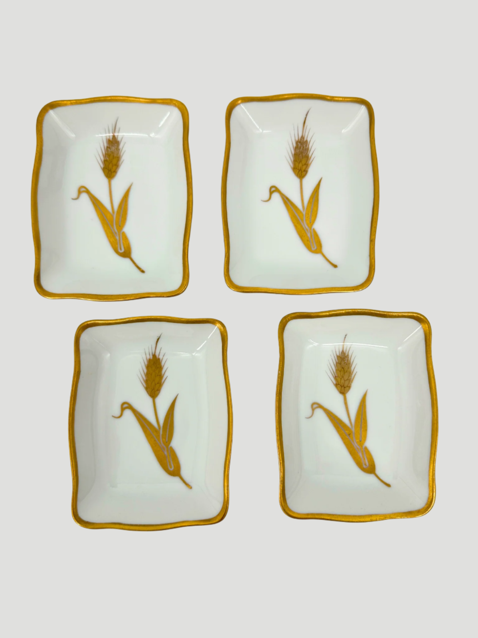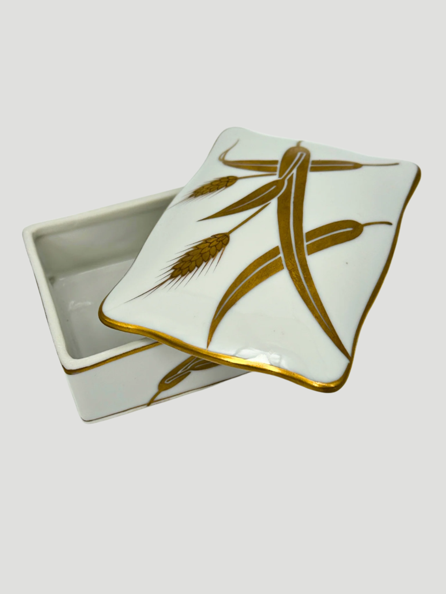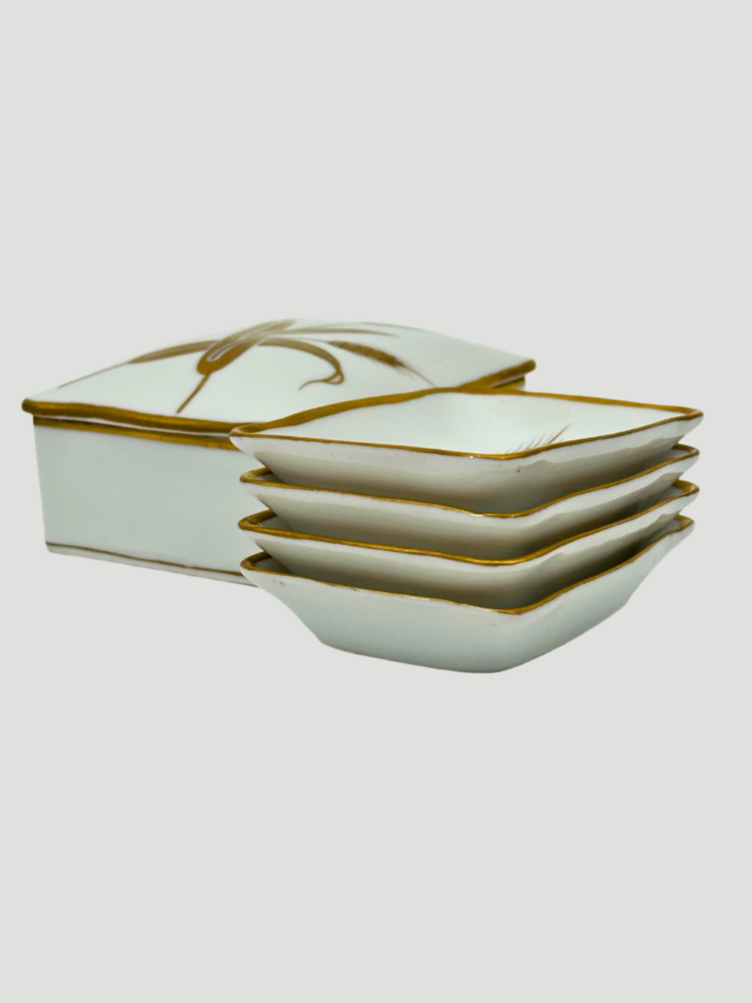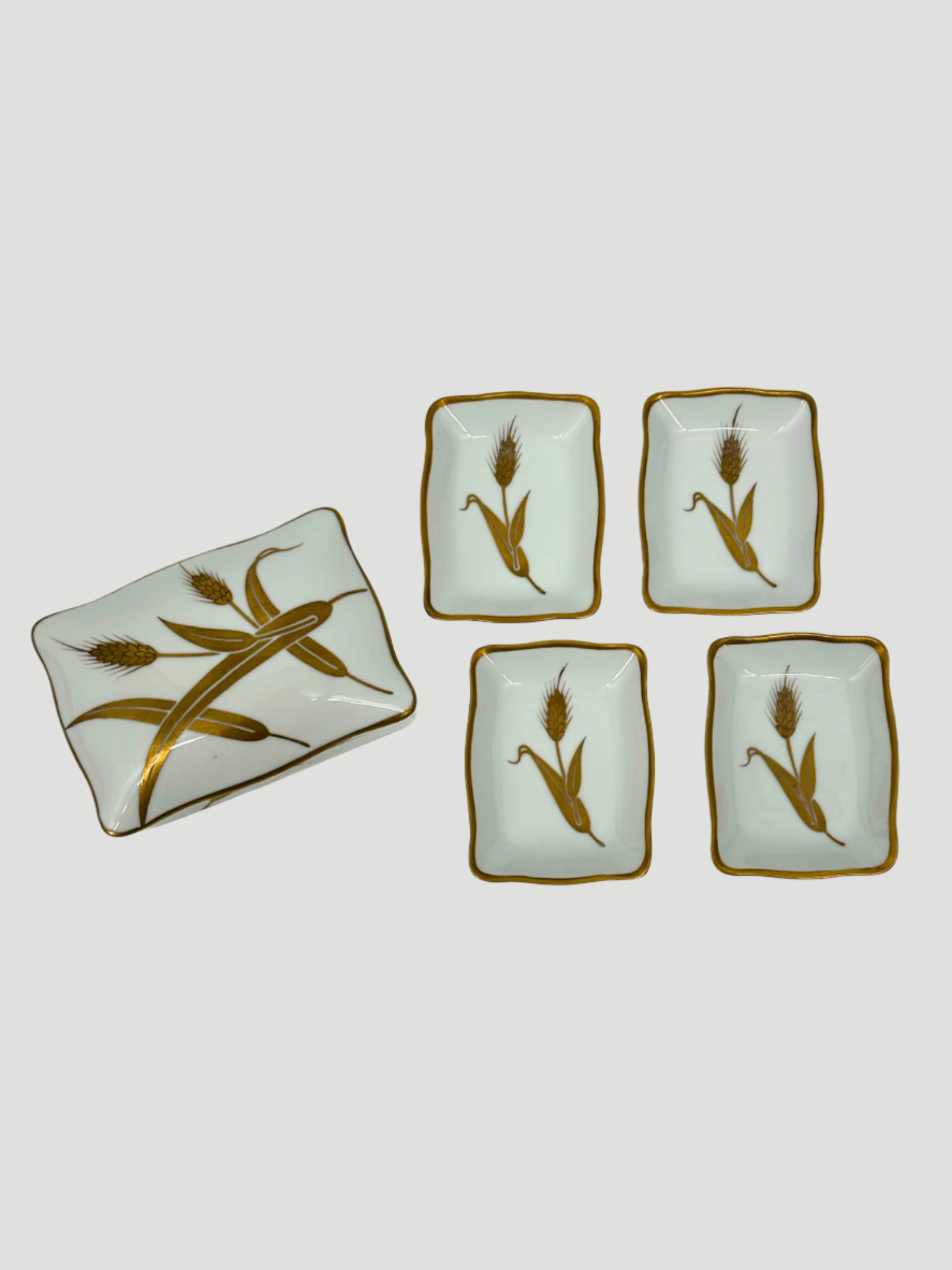 Vintage Fujiyama Porcelain Box and Dishes Set of 5 in "Gold Wheat"