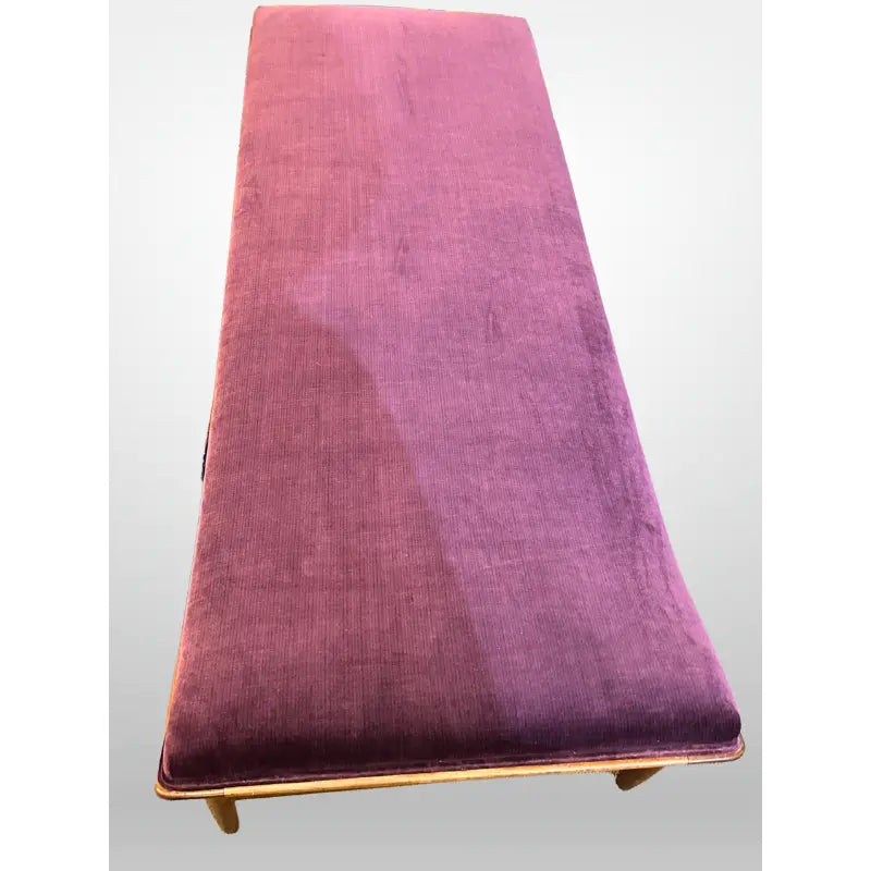 Stunning George Tanier Teak Chaise newly upholstered in a lush eggplant velvet.