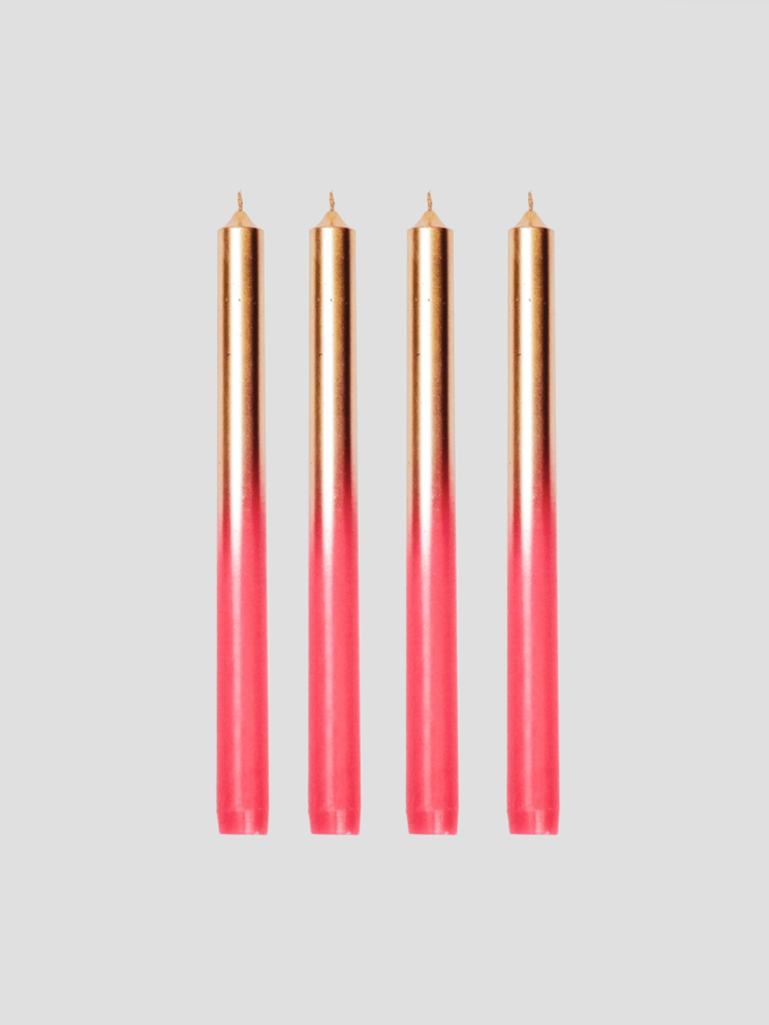 Pink & Gold Dip Dye Taper Candle Set of 4