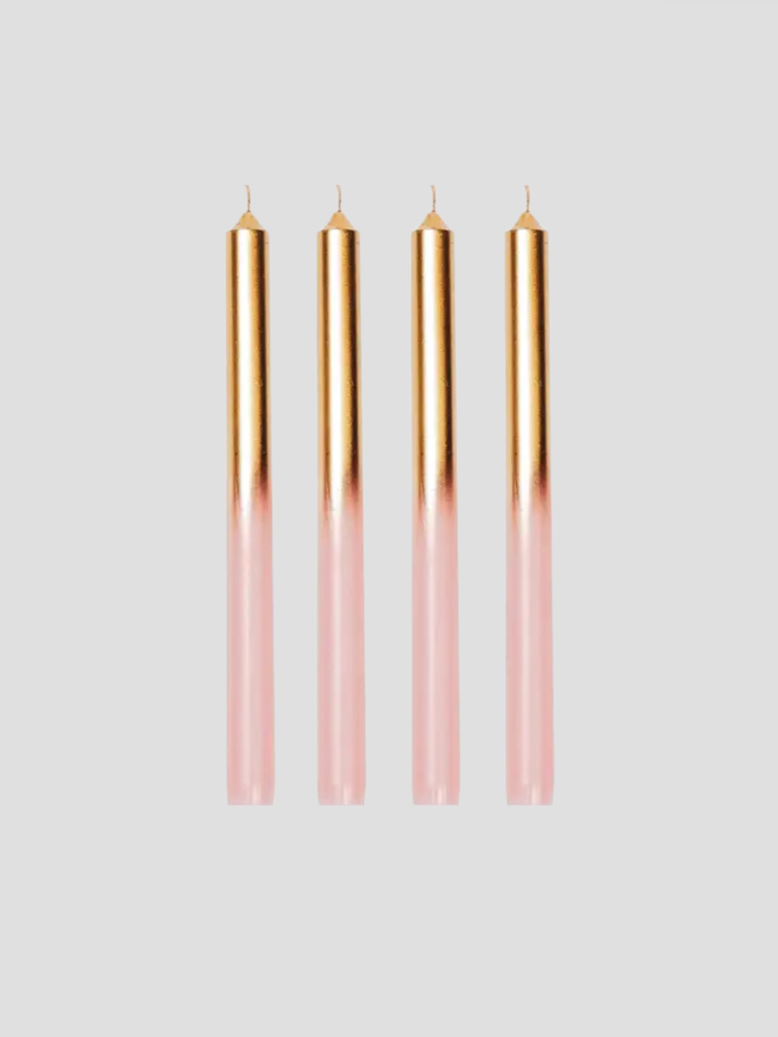 Light Pink & Gold Dip Dye Taper Candle Set of 4