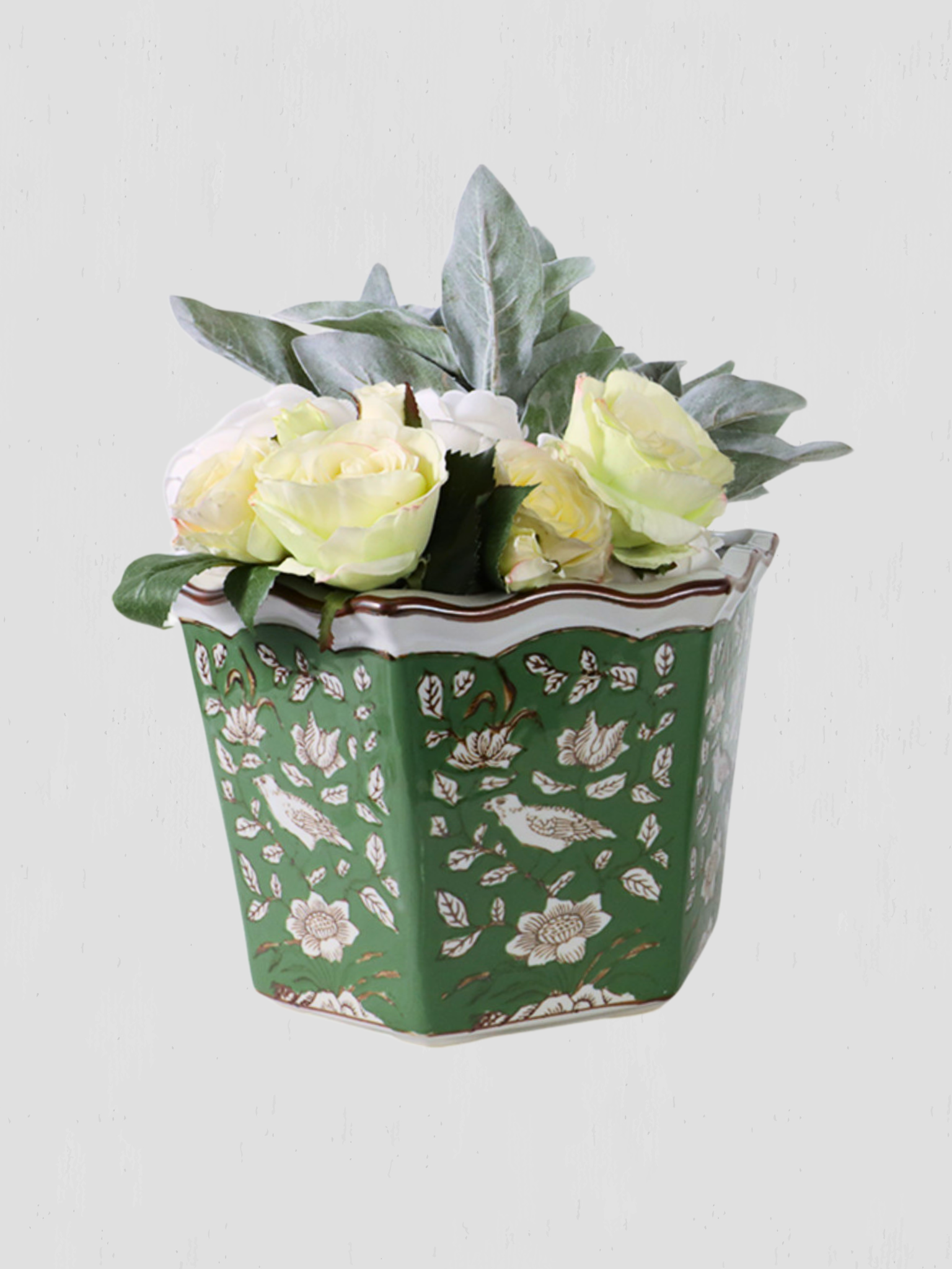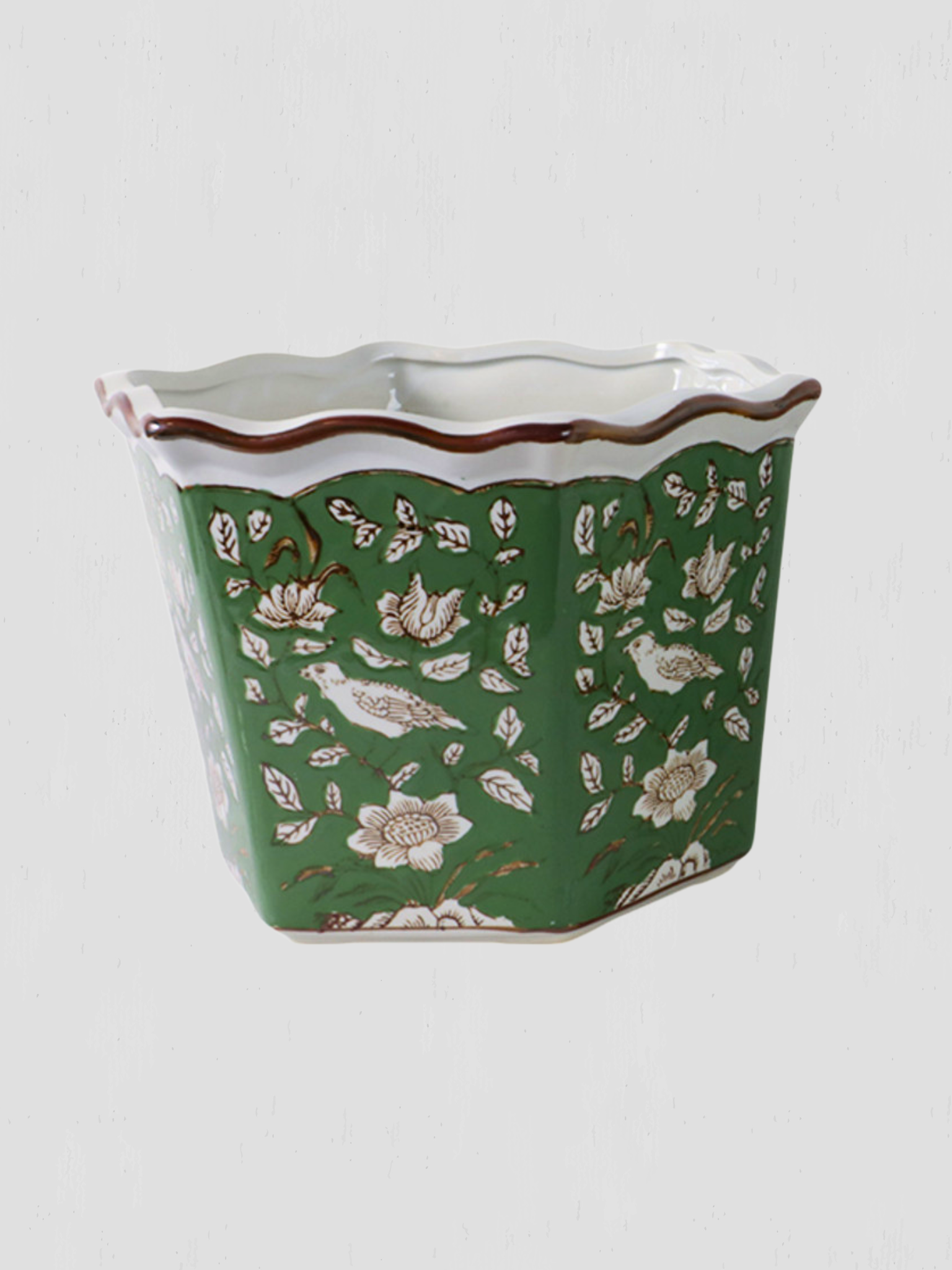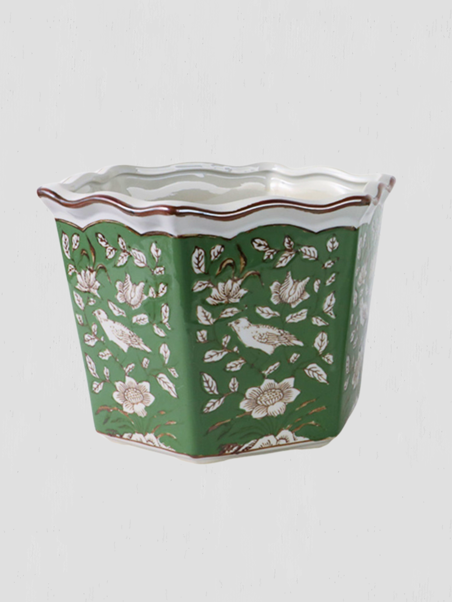 Large Green Chinoiserie Bird Planter. Indoor/outdoor use.