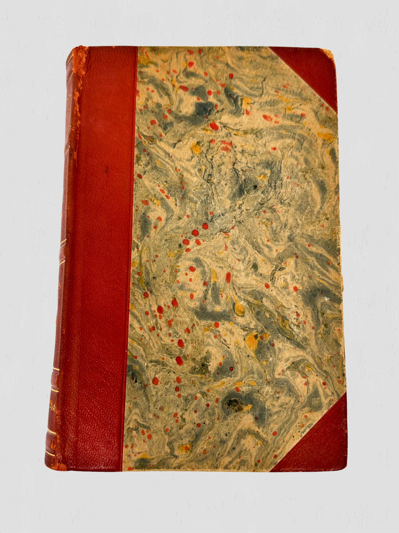 Wear consistent with age and use. All pages appear to be in tact, although each individual page has not been counted. Minimal scuffs on edges, scuffing on spine corners. Spine has come loose from some of the binding, but still is able to be opened and closed with ease.