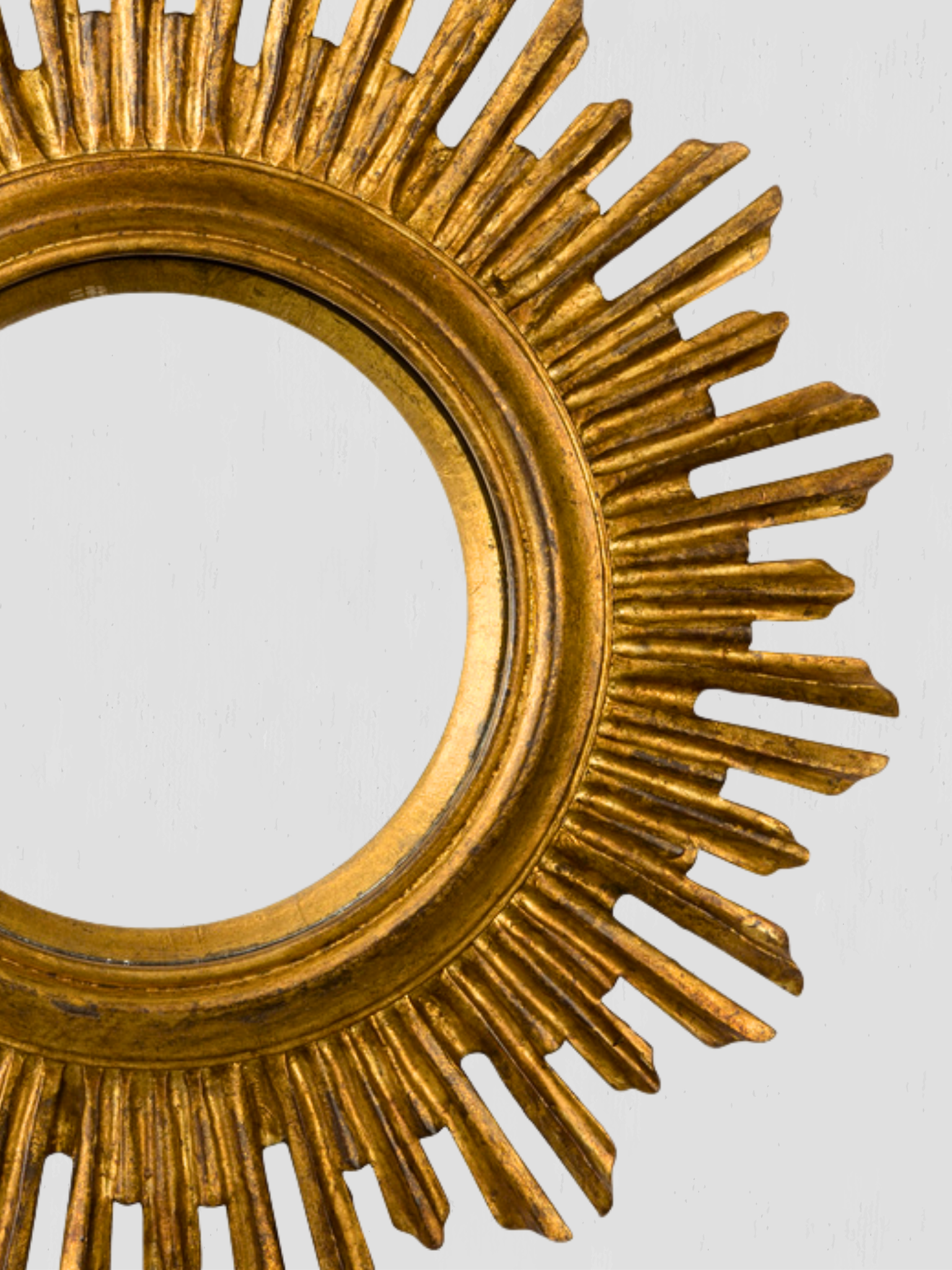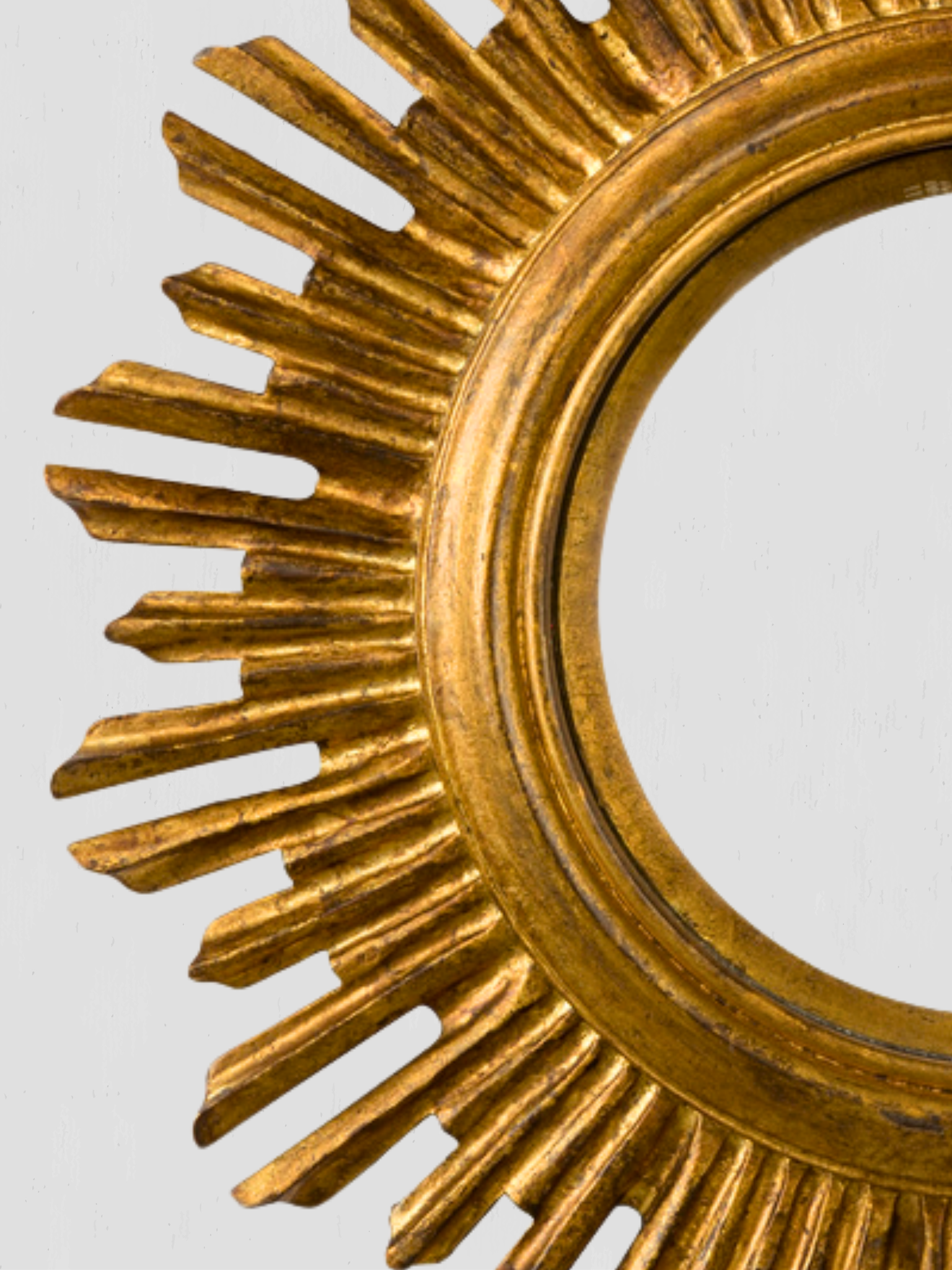 Ornate details combined with a glistening gold finish, the convex Lumiance Mirror will brighten any room. Placed in a grouping or by itself to create a sublime focal point.