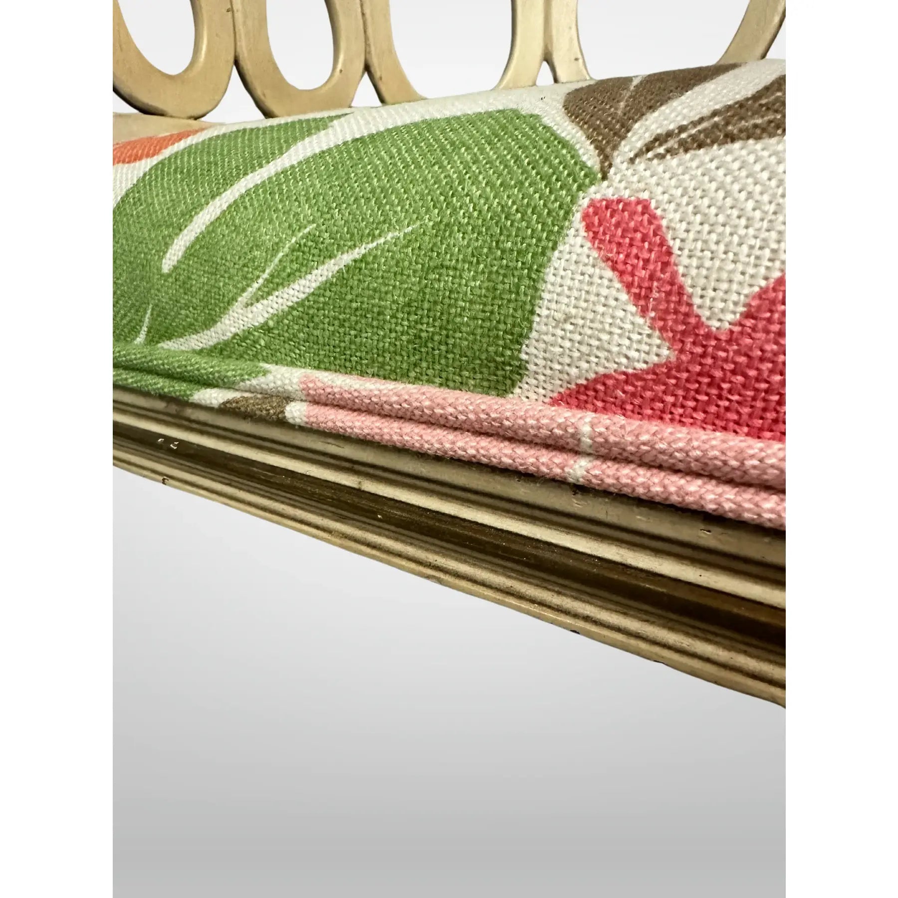 These two newly upholstered Neoclassical chairs feature a looped back detail with down cushions and a beautiful Nina Campbell floral linen upholstery. Standing on carved tapered legs. A lovely pair.