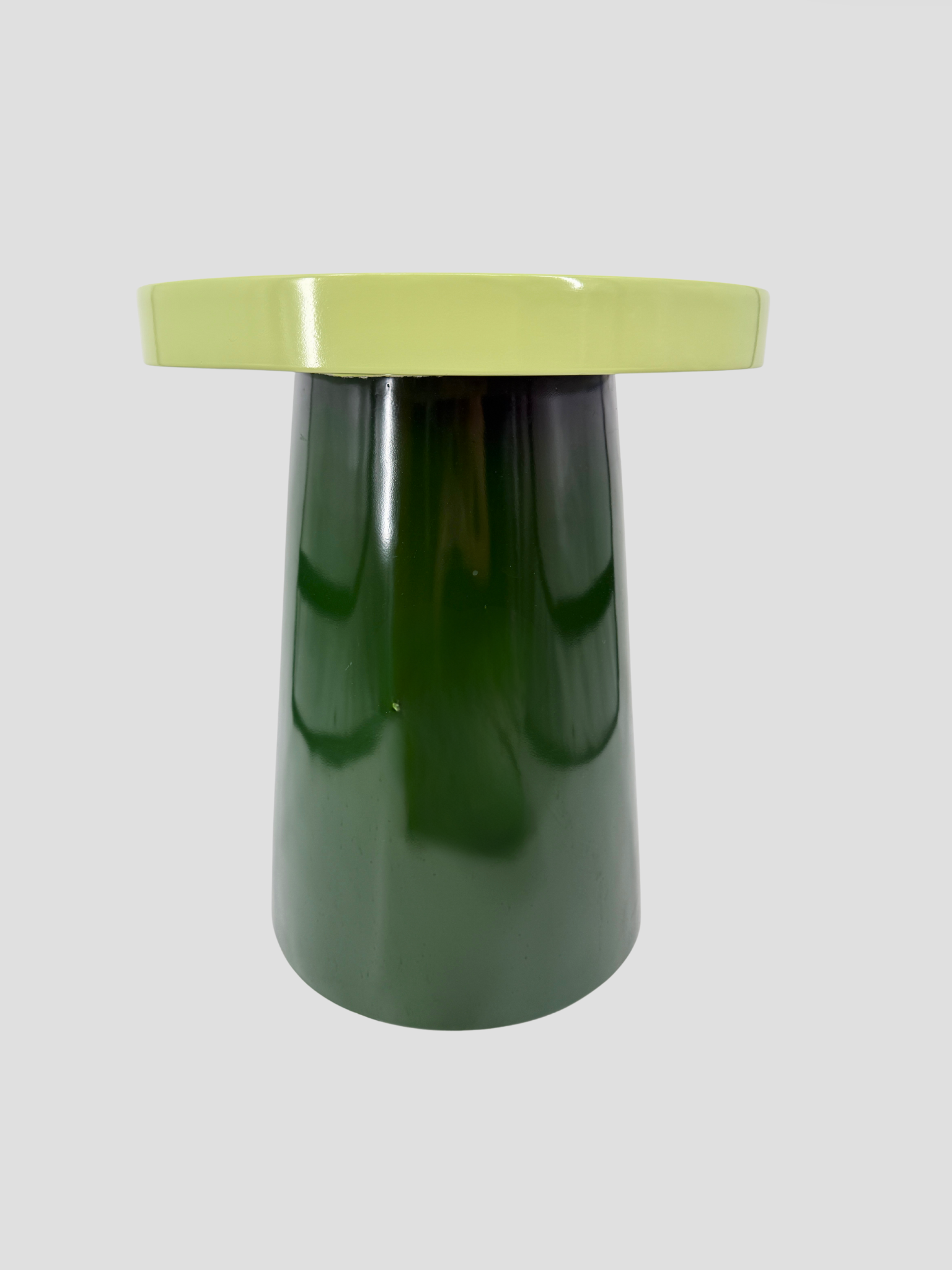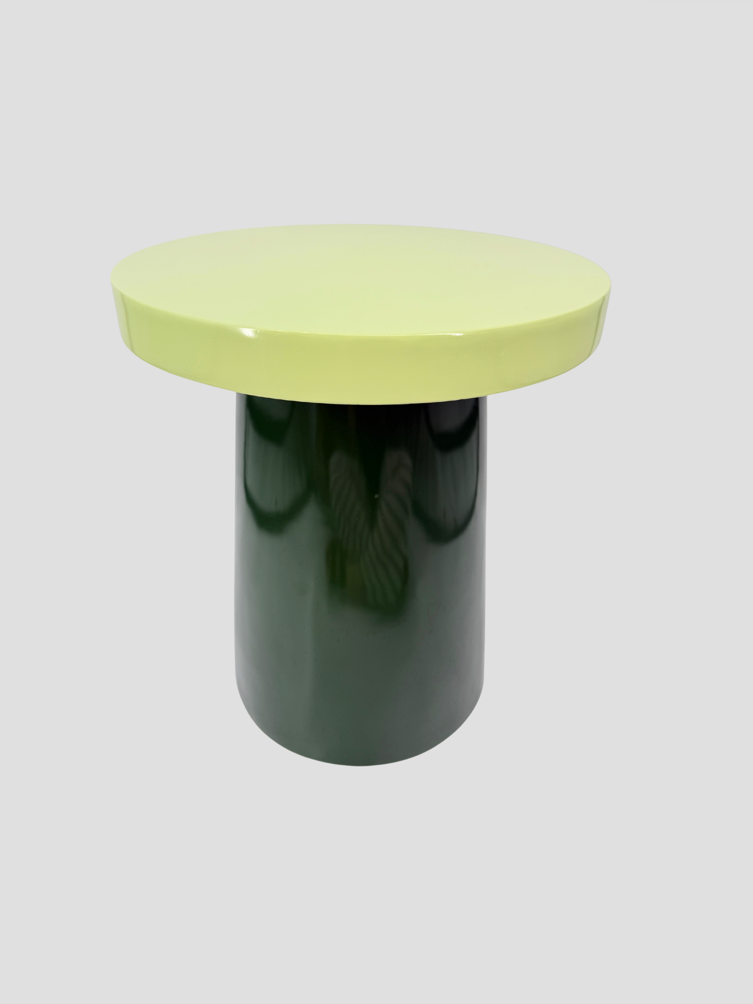2-tone green concrete Porcini Large Round End Table. Suitable for indoor/outdoor covered.