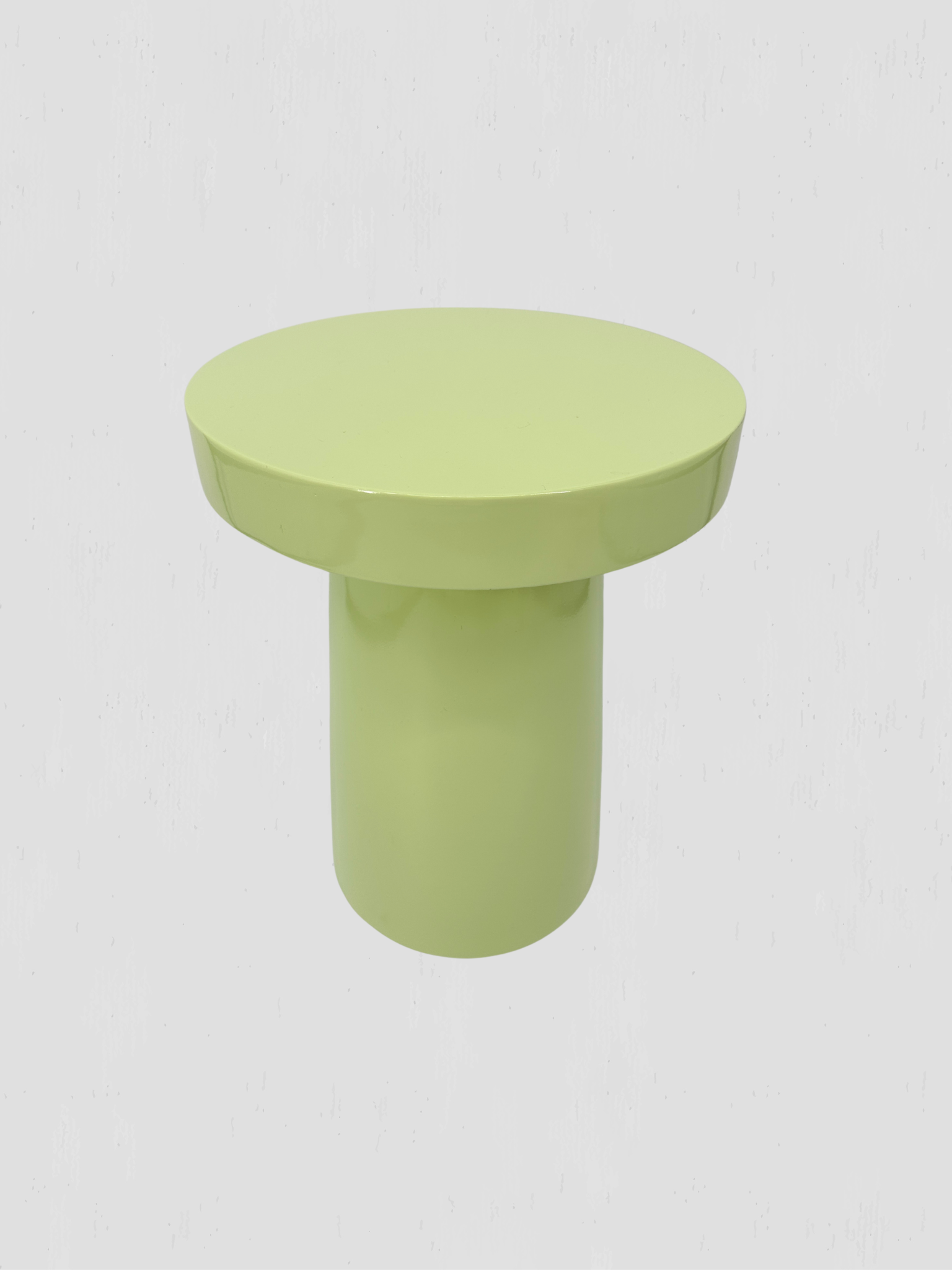 Light green concrete Porcini Small Round End Table. Suitable for indoor/outdoor covered.