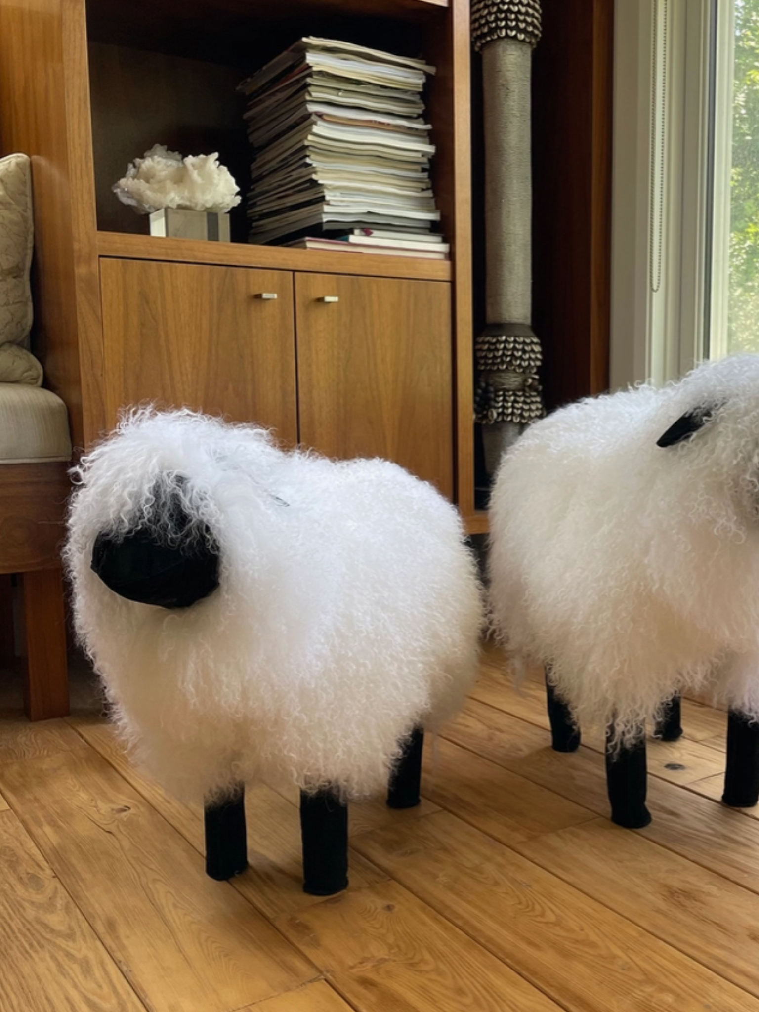 Tibetan Lamb White Sheep. Made from high quality dyed Tibetan Lamb and suede. Perfect accessory for a nursery!
