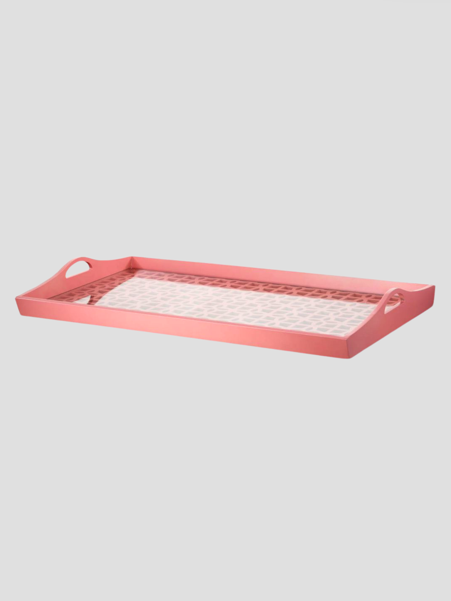The multipurpose Urban Vogue Tray makes a bold impression with its bright pink finish and sharp modern design. The bottom of the tray features a cutout pattern that immediately draws the eye, covered by a pane of durable and easy-to-clean tempered glass. Use this piece to serve drinks or snacks to guests or to keep small items organized in style.