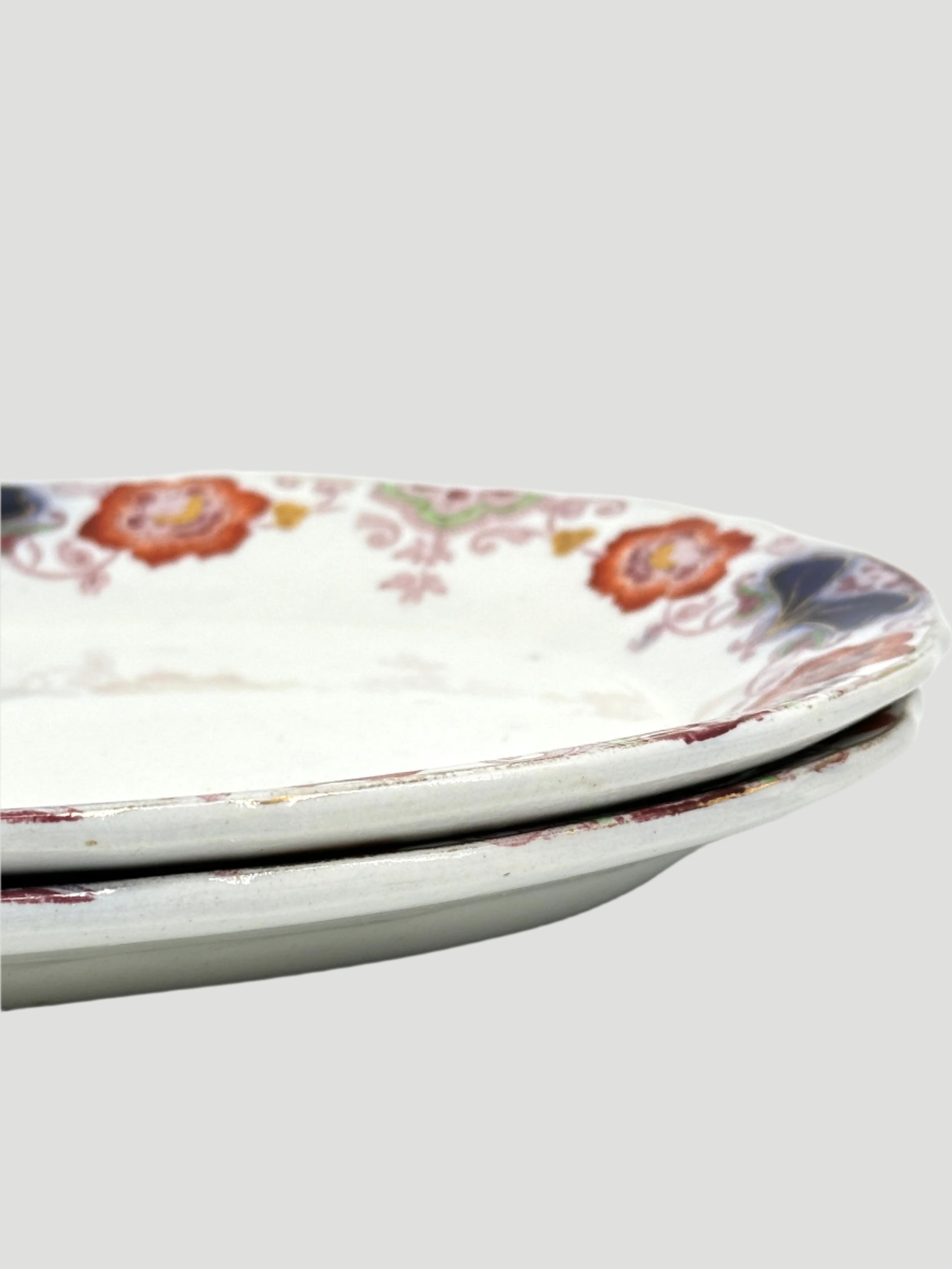The company produced tureens, cheese dishes, dinner plates, and platters, in addition to vases. They created a variety of motifs. Pattern 7807.