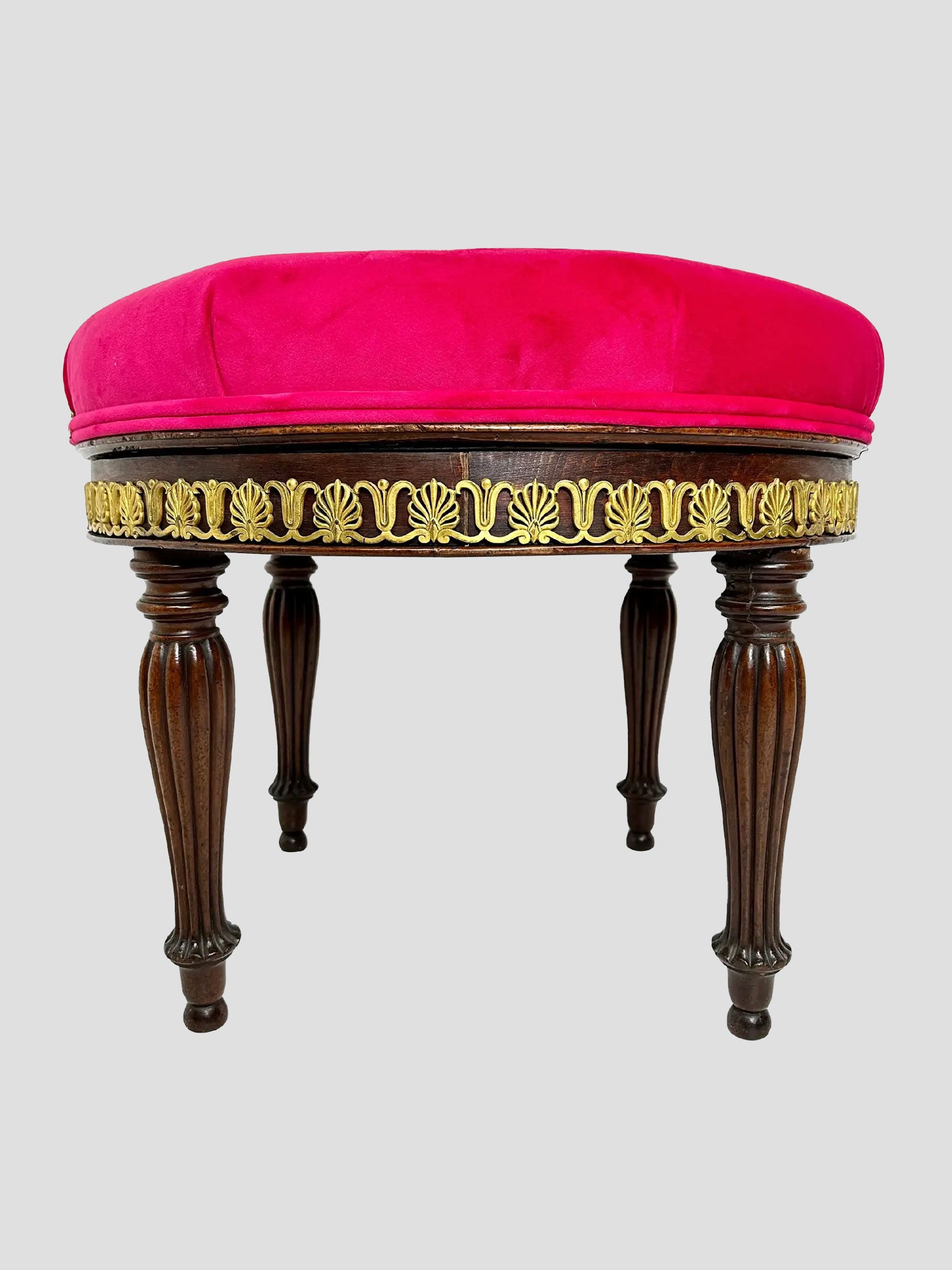 Early 19th Century French Empire Mahogany Revolving Stool With Brass Mounts Pink Velvet