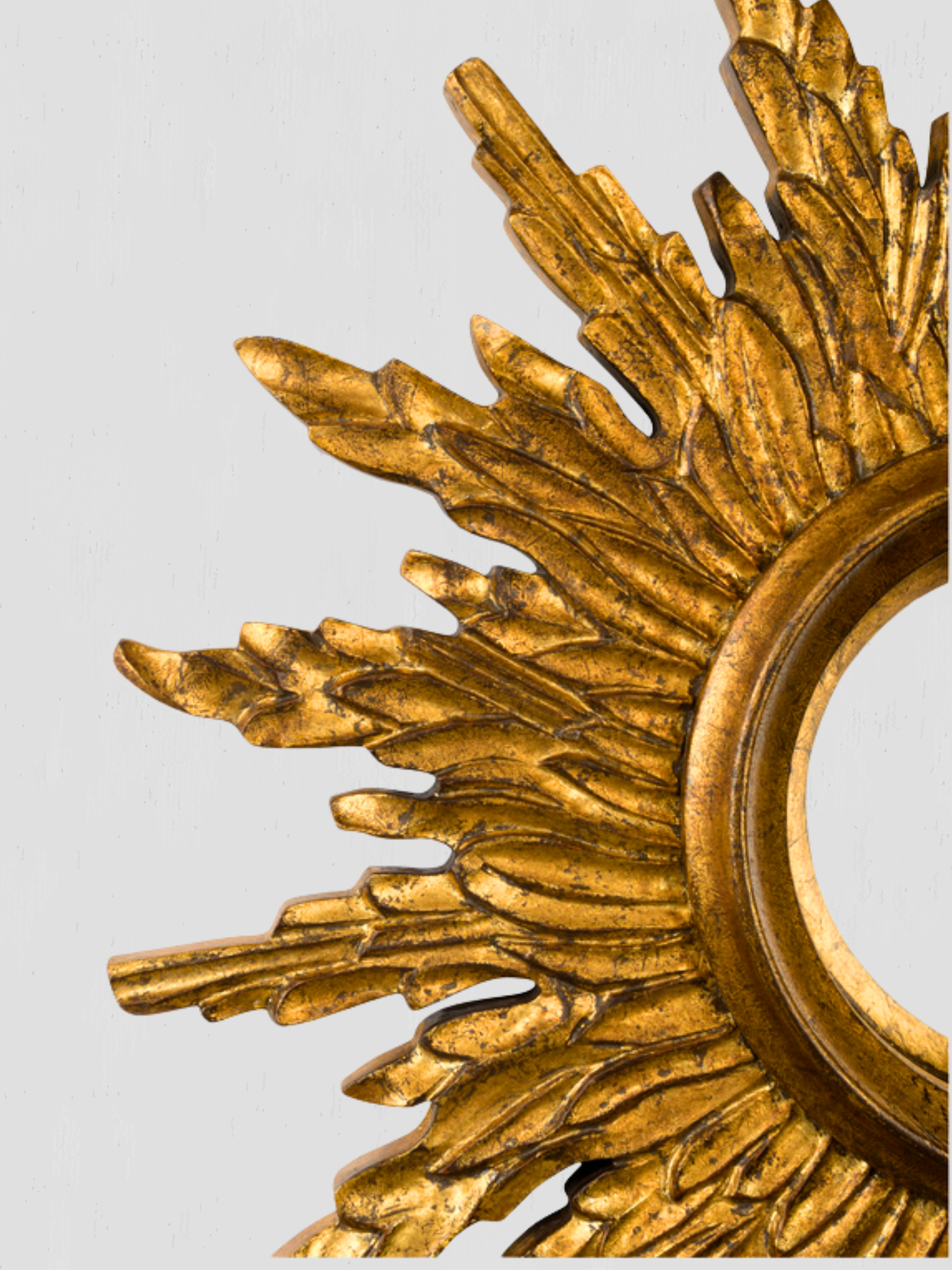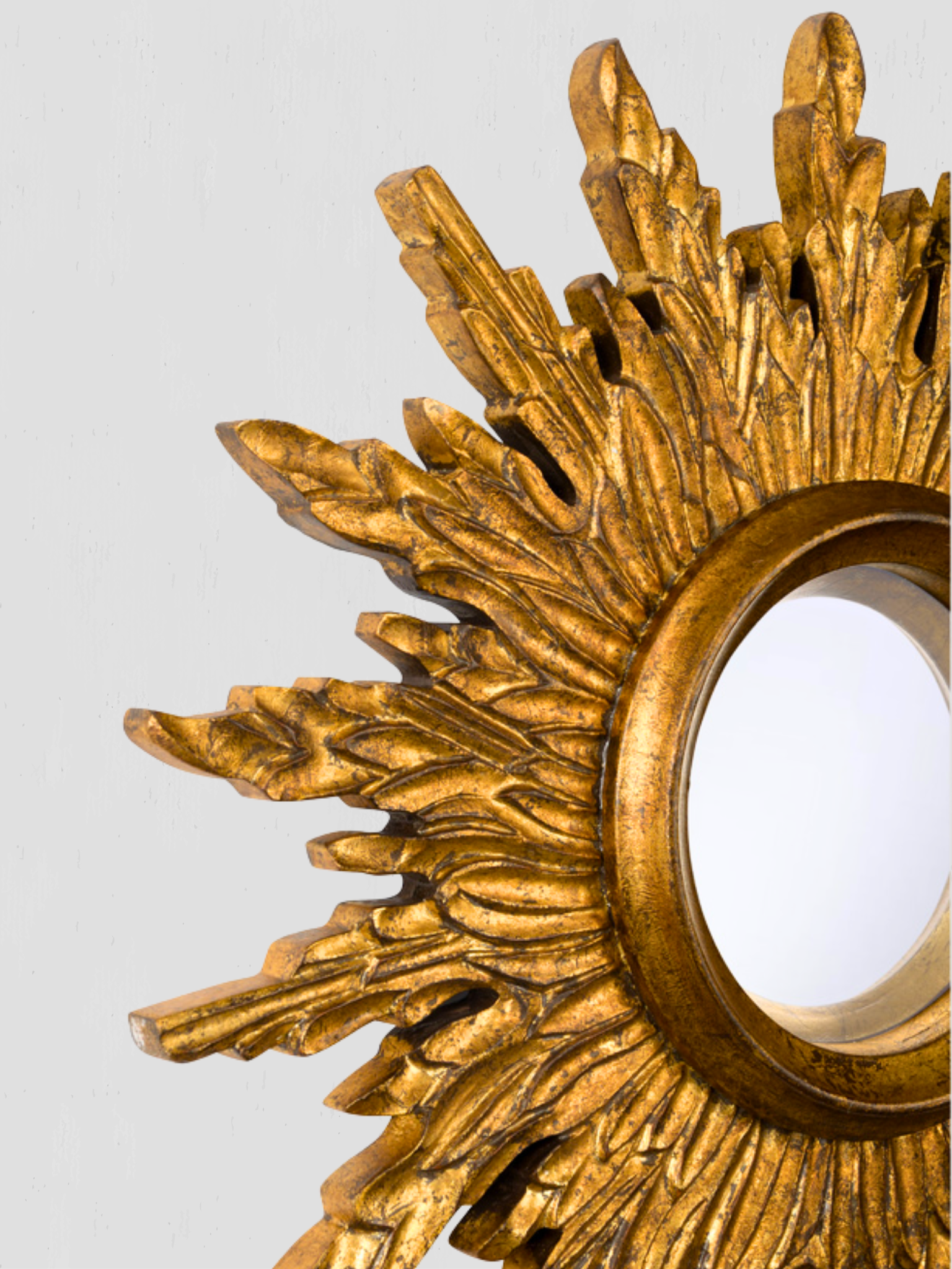 Ornate details combined with a glistening gold finish, the convex Sunbeam Mirror will brighten any room. It's lovely placed in a grouping or by itself to create a sublime focal point.