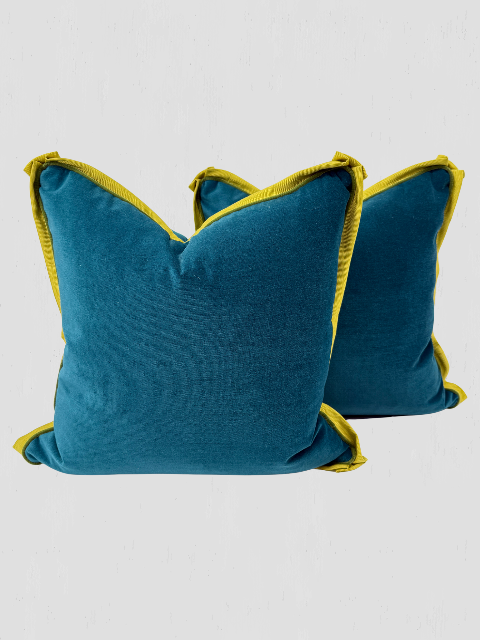 Teal Velvet with Chartreuse Flange Pillow Pair