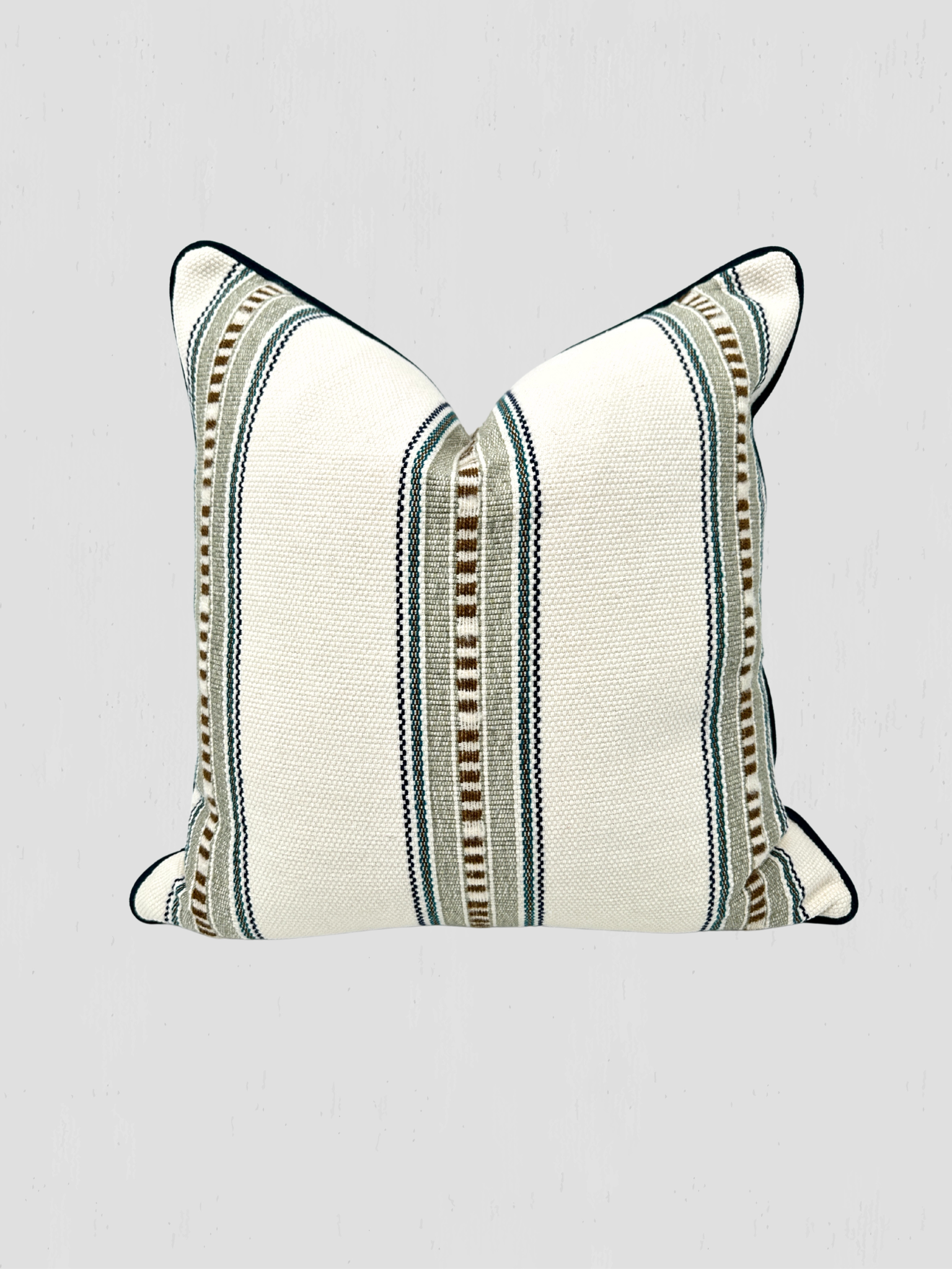 Custom Pillow pair by Trouvaille Home. Eastern Accents' Emerson Natural Peacock Blue Velvet Cord. 20" x 20". Hidden Zipper Closure. Down Blend Insert.