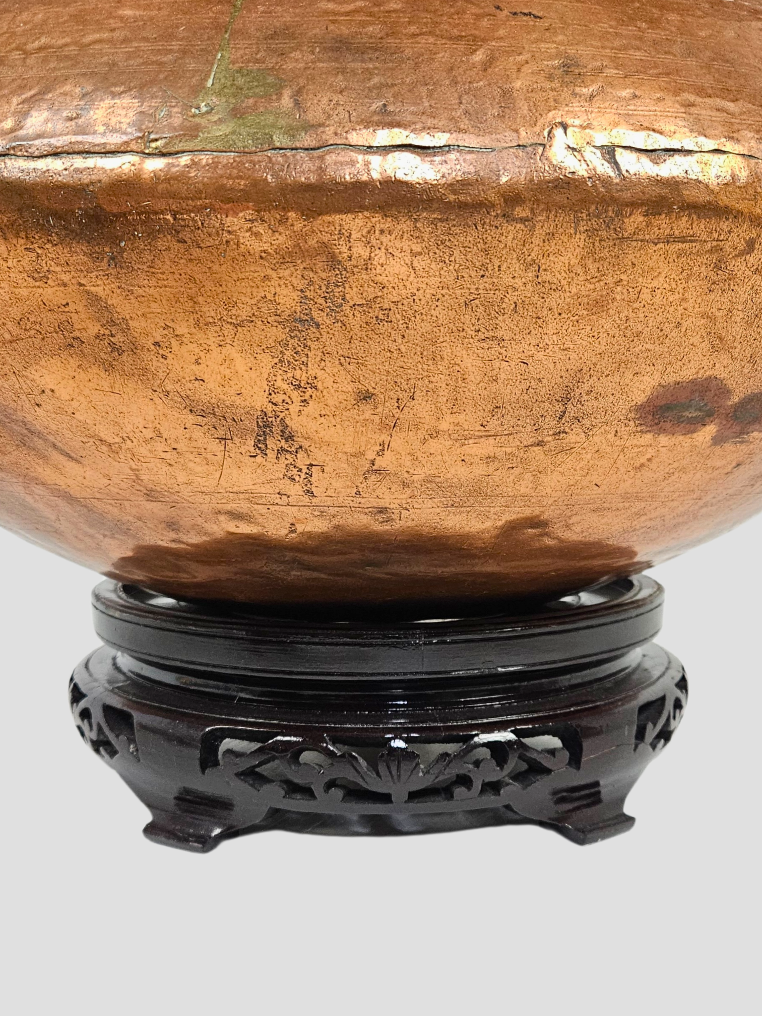 Beautiful copper and bronze vintage Indian Degchi Cooking Pot. Glowing warm patina on this very large Degchi Pot. The large size of this item is what makes it so remarkable.